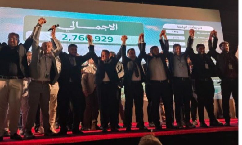 وشهدت الحملة تبرعات بارزة، تضمنت 320 ألفاً دولار من رجل الأعمال غسان عبود، ومليون دولار من الإعلامي موسى العمر، إضافة إلى 150 ألفاً دولار تبرع بها موسى العمر وشقيقه رجل الأعمال هايل العمر.