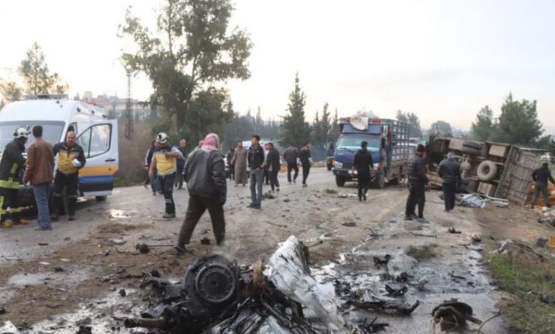 وتوفي رجل وامرأة وأصيب خمسة أطفال، في 19 من الشهر الحالي، جراء حادث سير على الطريق الواصل بين مدينتي عفرين وكفر جنة في ريف حلب الشمالي.